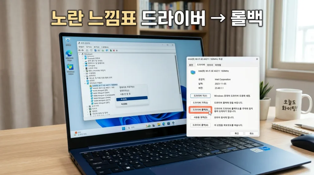 📌 핵심: 업데이트 직후 BSOD라면 드라이버 롤백이 가장 빠른 해결책이에요.